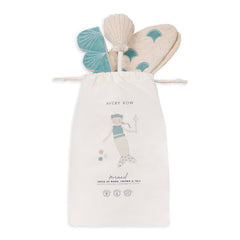 Transform your little one in to a magical, mythical sea-creature with this stunning Mermaid dress up set. Made from organic cotton canvas and velvet, and embellished with sparkly embroidered details, this elegant 3 piece set contains a sea-blue velvet crown, pretty shell wand with a pop out pearl, and beautiful wrap around tail. With velcro adjustable straps on the crown and tail, this versatile set is designed with love and made for passing down.